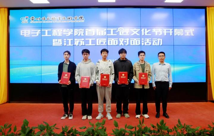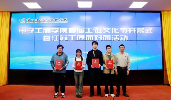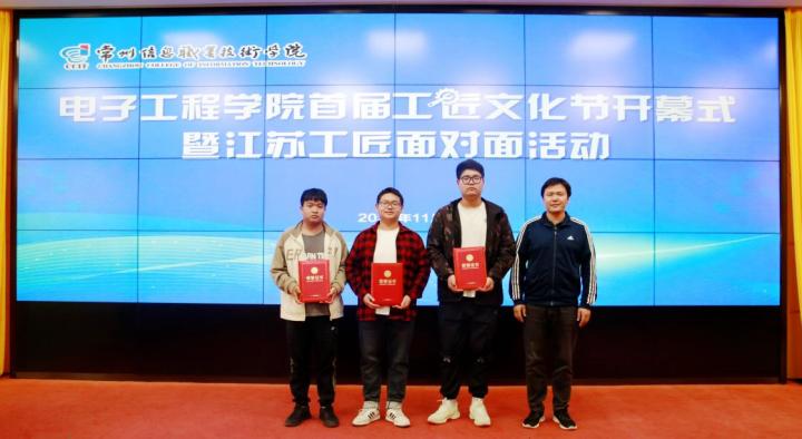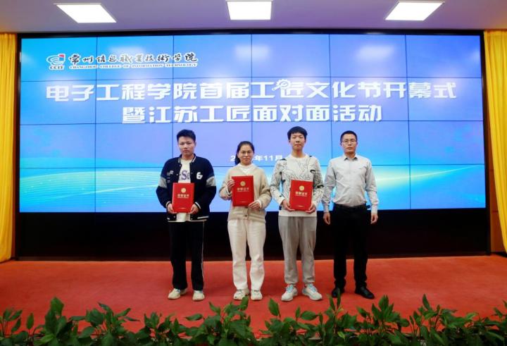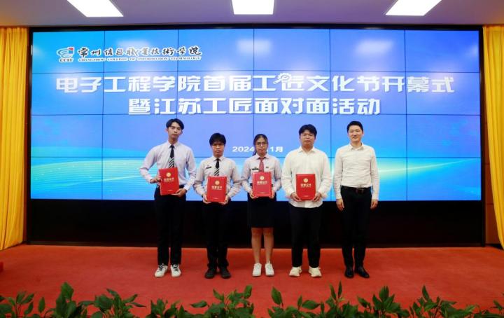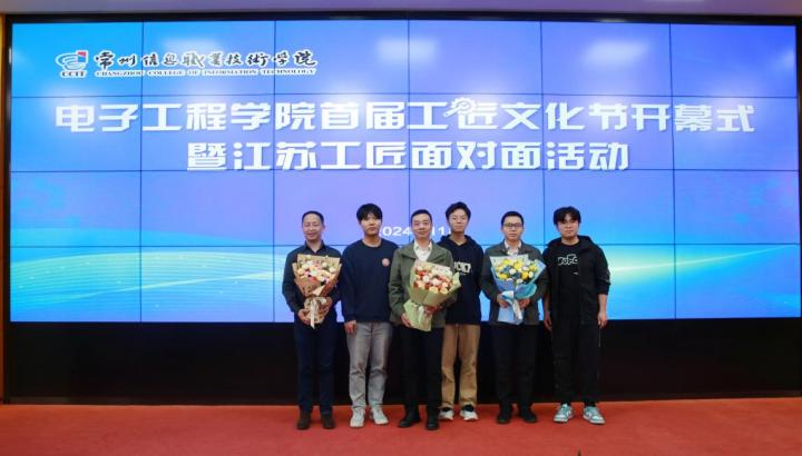 11月12日,常州信息职业技术学院电子工程学院首届工匠文化节开幕式暨江苏工匠面对面活动在行政楼403隆重举行,校党委委员、副校长陶大伟,中车戚墅堰机车有限公司工会委员尤理明、江苏工匠朱黎明,快克智能装备股份有限公司产教事业部总监沈朋、运营助理张兰等出席活动,学校相关职能部门负责人、电子工程学院师生代表近200人参加活动。
