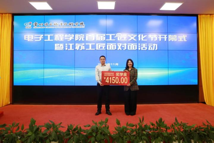 快克智能装备有限公司是学校深度合作企业,与学校共同组建“快克”现场工程师学院、“快克”现场工程师班,活动现场,产教事业部总监沈朋代表公司向学校捐赠了奖学金。