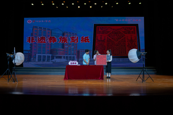 “对这款刻纸感兴趣的家人们,准备好,3、2、1,上链接……”活动现场,沙洲职业工学院的学生们将电商“直播间”搬上了舞台,在主播和助播的推荐下,彝族刻纸、非遗扎染连衣裙、3D打印悟空等传统文化与科技创新融合的作品一一展现。节目通过青年人喜爱的直播方式,将弘扬工匠精神与弘扬中华优秀传统文化、社会主义先进文化紧密结合,在增进学生对工匠精神的思想认同、价值认同、情感认同的同时,引导他们自觉传承工匠精神,坚定走技能成才、技能报国之路。