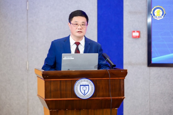 广州市问途信息技术有限公司董事长黄昕博士,代表问途公司向大赛的开赛发表了致辞,他首先回顾了“南旅•问途杯”的成立背景及发展历程,并向所有主办、承办和协办单位,以及来自行业的专家裁判表示了衷心的感谢,希望各位参赛选手在接下来比赛中全力以赴,展现出最佳实力和最好创意,共同投入到精彩的决赛中,全力以赴、绽放激情。
