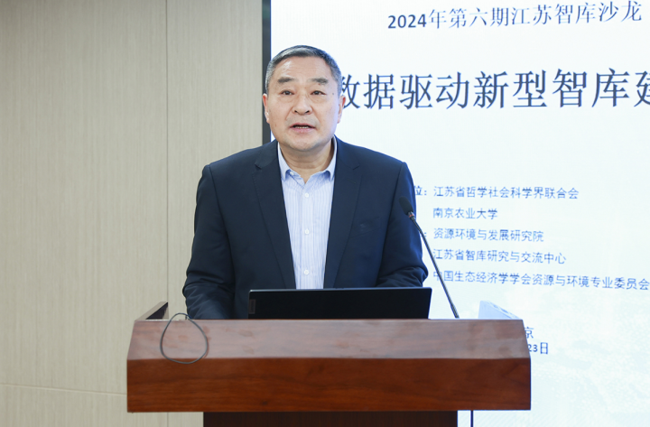 南京农业大学党委副书记刘营军介绍了学校紧扣“四个面向”,坚持将智库建设作为服务国家重大战略、服务区域经济社会发展、服务农业农村现代化的一项重要工作,积极统筹资源、整合力量,推动高校智库建设不断迈上新台阶的相关做法。他表示,本次活动承办方——资源环境与发展研究院自2020年成立以来,主动围绕长江经济带等重大国家战略实施,以及省委、省政府推动高质量发展走在前列中事关可持续发展的战略问题和重大政策问题进行研究,以科学咨询支撑科学决策、引领科学发展,形成了一系列标志性的研究成果,为推动国家治理体系和治理能力现代化,服务“强富美高”新江苏建设,贡献了南农力量。
