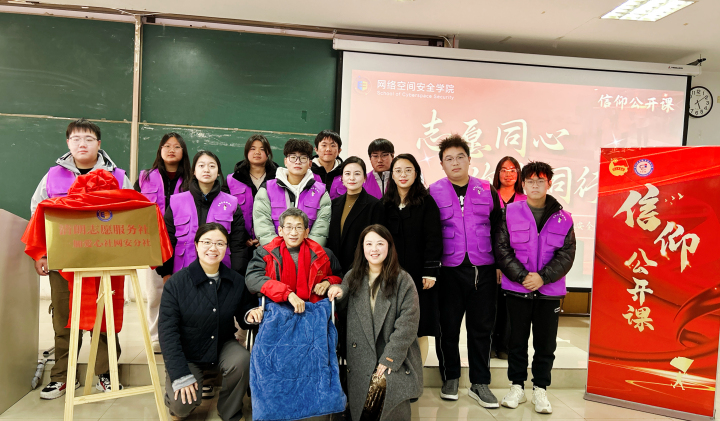 “2006年,我来到常州信息学院J01教室和同学们见面畅谈志愿服务工作,18年后,还是相同的地方,我再次和常信的同学们面对面,这个缘分是志愿精神带给我们的。”12月24日,常州信息职业技术学院网络空间安全学院“清朗”行动志愿服务组织携手一加爱心公益服务中心成立“清朗志愿服务社——一加爱心社网安分社”,全国最美志愿者、一加爱心社社长王德林为分社揭牌,并与现场的青年志愿者们分享他和常信院的渊源。