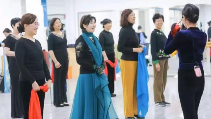 在心智青中老年文娱学校,记者看到形体教室、直播教室、培训室等各类功能区,满足老年人多元化的学习需求。老年课程也开始“赶时髦”、更具时代特色,除了声乐、器乐、舞蹈、太极拳,还有瑜伽、新媒体运营等课程。