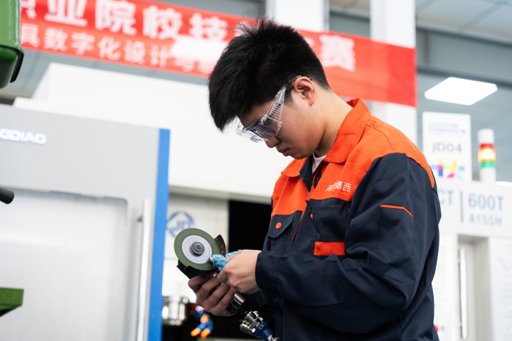 该赛项采用“实操+展评”的赛制进行。实操竞赛环节要求参赛选手在规定时间内完成塑料制件数字化设计、模具CAD设计以及模具零件数控加工等多个环节的任务。展示讲解环节则重点考核参赛选手专业技能的熟练、规范程度,解决复杂问题的综合能力以及团队协作能力,是对选手综合能力的深度检验。