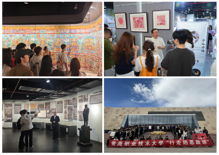 在实践研学环节,两地师生认真开展“行走的思政课”。南京学员走进江苏铁路教育馆,通过唐胥铁路微缩模型、南京长江大桥建设资料等展陈,追溯中国铁路百年奋斗史中的民族协作印记;青海学员实地探访海北州“两弹一星”基地,在原子城纪念馆感悟“热爱祖国、自力更生”的精神谱系。同时,“云端文化共赏”环节让青海学子线上参与南铁院第三届非遗工艺美术展,秦淮灯彩、绒花等非遗技艺,南铁院学子则从线上“走进”藏文化博物馆,与掐丝珐琅、唐卡等艺术在云端对话,深化对中华文化多元一体格局的认知。