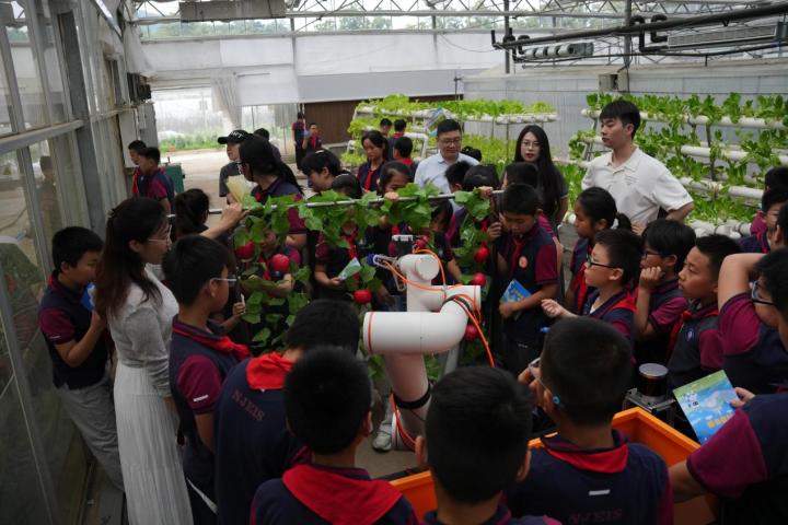 5月28日,江苏省园艺学会教育工作委员会联合金陵科技学院园艺园林学院举办“智慧园艺”科技实践研学活动,50多名来自南京晓庄实验学校的学生通过智能机器人采摘、植保无人机飞行演练、创意园艺绘画等特色项目,体验农业科技的独特魅力。