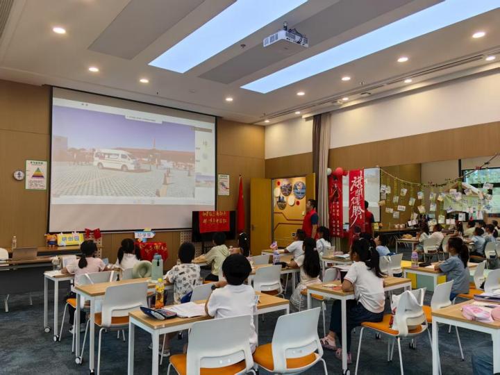 在屏幕上,一块吐蕃石碑的藏梵刻痕清晰可见。青海的学生讲解道:“看,两种文明在这里平等对话。”另一边,南京江北新区暑托班的孩子们看着原子城的直播画面说:“科学家爷爷真厉害!”