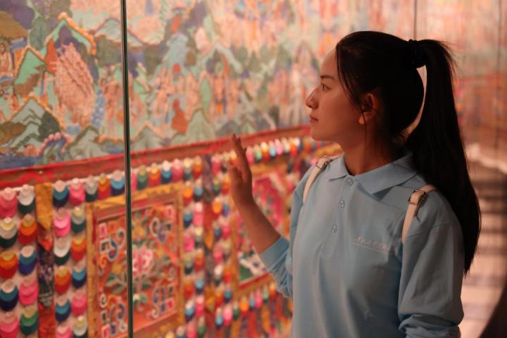 在藏文化博物馆的智能展柜前,技术帮助人们更好地理解传统文化。一场针对0.3毫米针距的“拯救行动”正在进行:数字刺绣系统还原了藏戏面具的“套针”绝技。这套技术参数来源于对七位老艺人的动作捕捉,将原本需要三年才能掌握的0.3厘米针距技艺,变成了即时可学的教程。非遗研究员表示:“年轻人点几下屏幕就能理解针法走向。”青海学生指着4米高的唐卡详细解释:“这些颜料采自四千米高的矿山,画师要诵经一百天才开始作画。”高清镜头下,唐卡上的金线纹路与南京云锦的盘金绣在屏幕上清晰对比。丁琳由此想到:“这体现了丝绸之路上的技艺交流。”