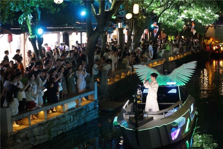月夜越周庄·水上有歌音乐会将现代音乐与水乡特色深度结合,邀请了15名国内优秀音乐人,以五大主题场次,将整个周庄变为了沉浸式水上“歌友会”。以水为媒,使游船成为开放式移动舞台,结合周庄全水域的音响矩阵,联动“水乡+夜游+音乐”多场景,形成了移步异景,步步都有余音绕梁、声景结合的新情致。据了解,月夜越周庄·水上有歌音乐会首场直播便吸引超12万人观看。一个多月的持续运营,整体活动在全网引起超过2400万人的围观。