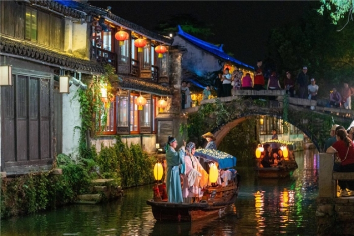 近年来,周庄通过“传统IP+潮流内容”的深度融合,成功探索了传统文化创造性转化与创新性发展的新路径,为长三角文旅产业升级提供了一个“可听、可看、可互动、可传播”的夜经济样板。如今的周庄,正从“静态观光”迈向“动态沉浸”,打通了吃、住、游、购、娱多条休闲旅游通道,深挖江南水乡“夜文化”,培育文旅产品,引导文旅消费,激发古镇新活力。